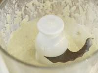 ❷ ショウガ、ニンニク、ヨーグルトをフードプロセッサーに入れ、レモン汁を絞り入れてペースト状になるまで砕く。