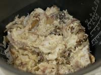 ❼ ❻に❺を入れ材料が浸るくらいまで水を入れ、炊飯する。