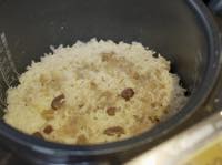 ❼ ご飯が炊けたら、お好みで塩を少しずつ入れて混ぜる。