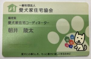 愛犬家住宅コーディネーター 2024年9月15日 最終更新日時 : 2024年9月17日 webmaster 互いにストレスない空間を 資格:愛犬家住宅コーディネーター ライフデザイン・カバヤ営業本部朝井 陵太 当時、介護が必要なワンちゃんを飼っており、見識を広めたく「愛犬家住宅コーディネーター」の資格を取得しました。 ワンちゃんの習性、特徴を学び、共に暮らすためにお互いにストレスの無いような空間の創り方、素材の選び方などのお話しで、ワンちゃんを飼われているお客様と会話がよく盛り上がり重宝しています。