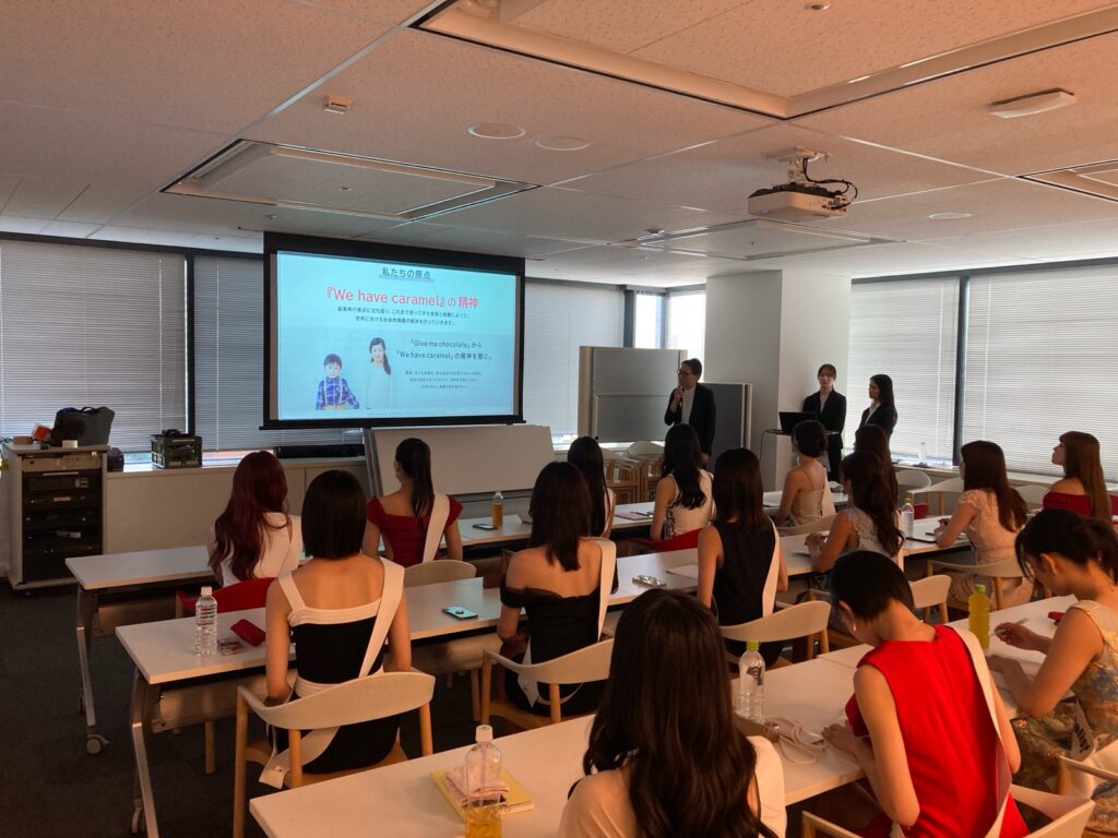 記者会見後には、ファイナリストの皆さんに当グループへの理解を深め、今後の活動での情報発信等につなげていただくことを目的に、日本カバヤ・オハヨーホールディングス、オハヨー乳業、ライフデザイン・カバヤ、ザ・ロイヤルゴルフクラブ4社の事業説明を実施しました。ファイナリストからは多くの質問が集まり、予定時間を超え、非常に盛り上がりました。