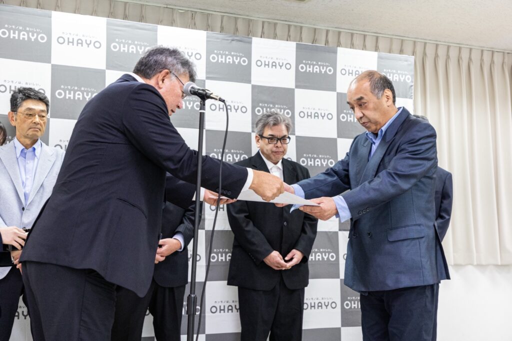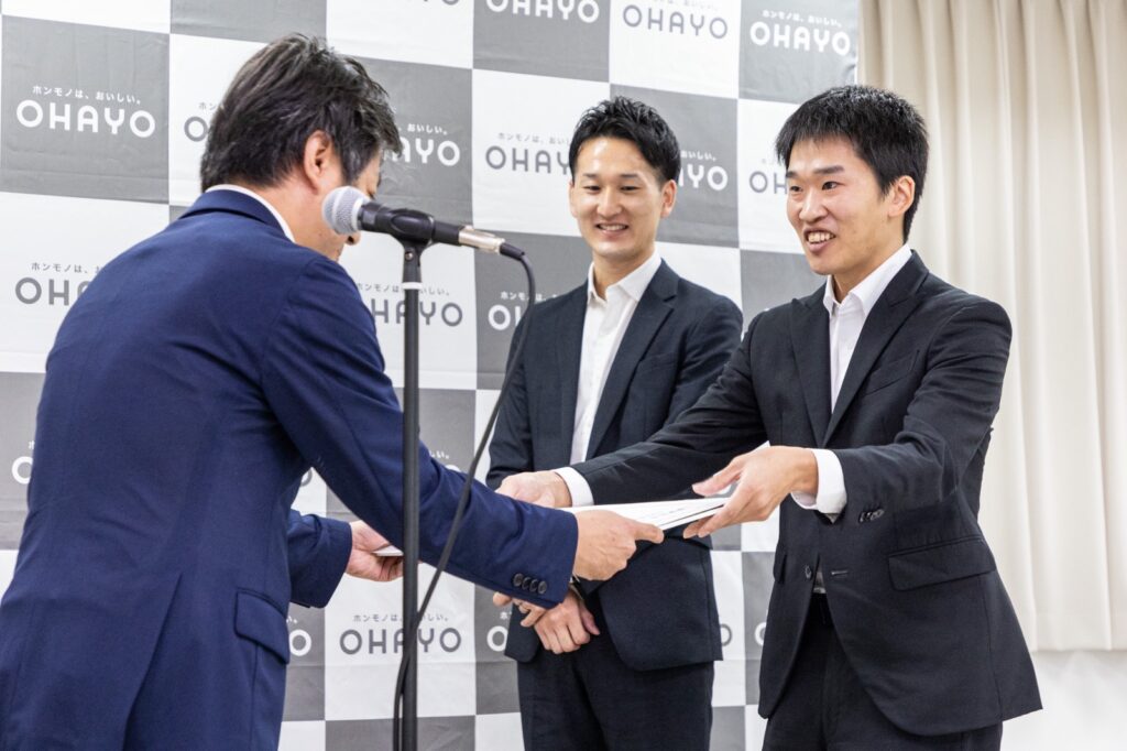 また、「いいモノはいい!」と言える職場づくりを目指して運用している「オハヨー表彰制度」から、2023年度のグランプリや準グランプリ、Good推薦者のグランプリ・準グランプリの方々への表彰状の贈呈式も実施。若返った事務局メンバーの紹介とともに、今年度の方針についても発表されました。