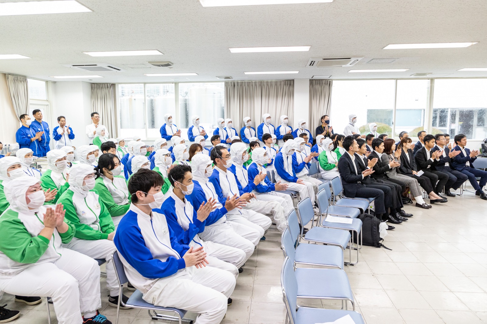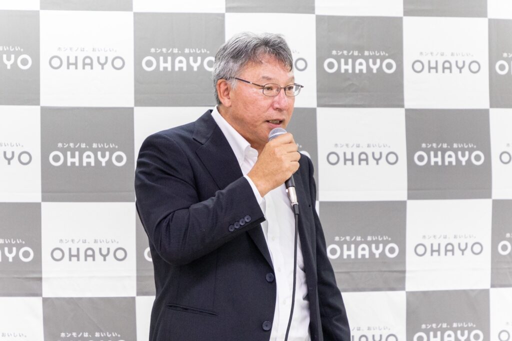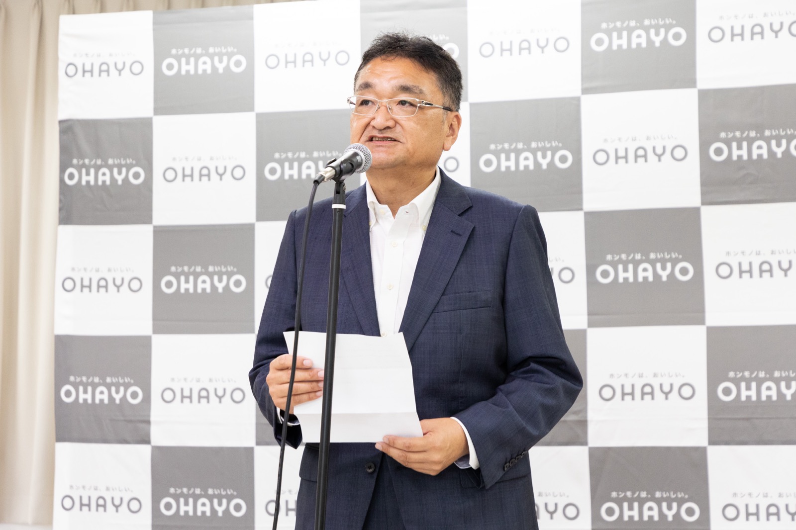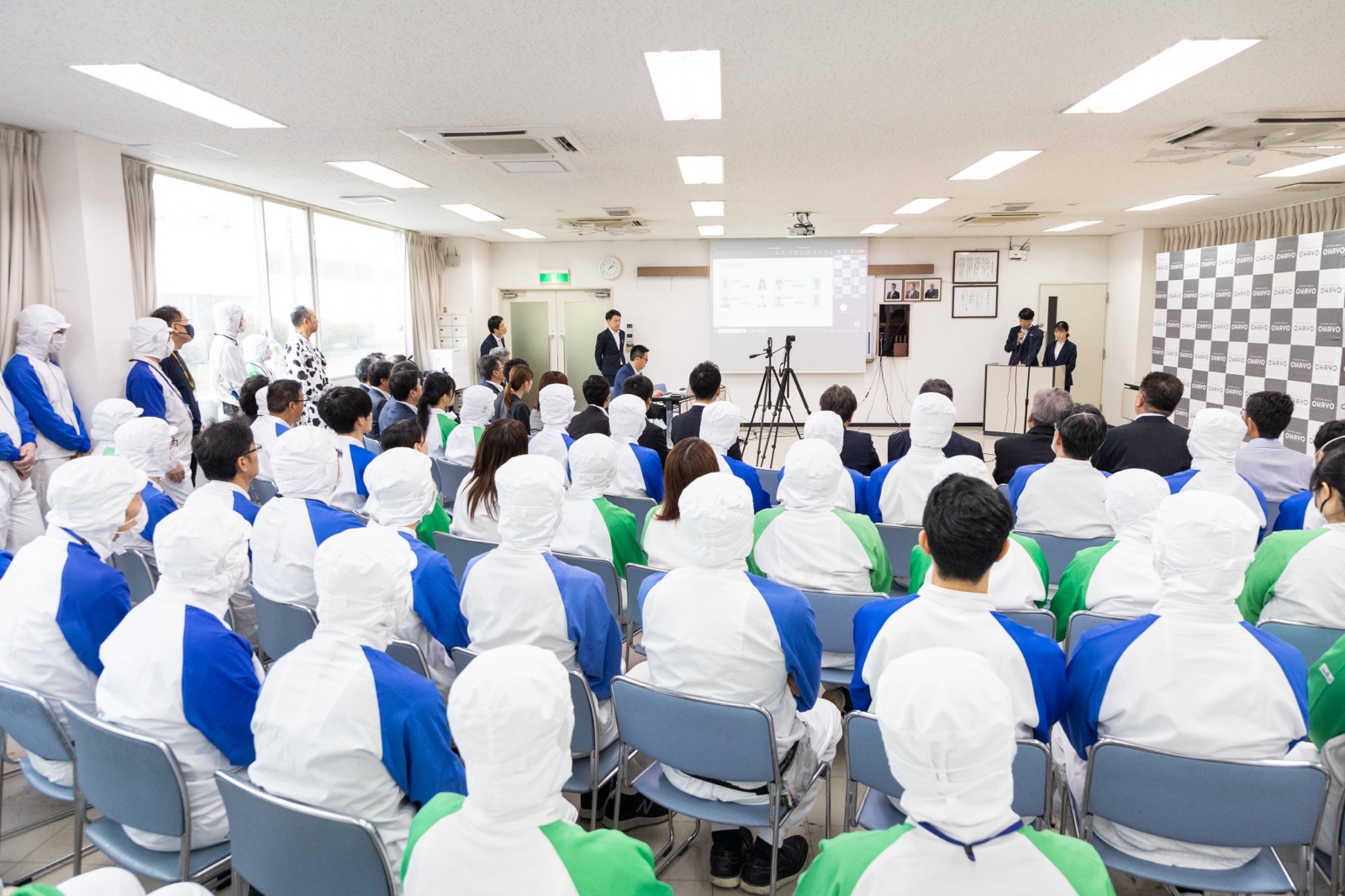 関東工場は、オハヨーが岡山から全国に進出するための重要な拠点であり、焼プリンやBRULEEなどの新しいチャレンジをカタチにすることで、現在は会社の売上の半分以上を生み出しています。この35年間には、未曾有の震災によって操業停止も経験しましたが、社員の皆さんの団結力と底力によって早期再開することができました。今、改めてその力を発揮し、「乳で当たり前をありがとうに変える」ために頑張っていきましょう」と力強いメッセージも発信されました。