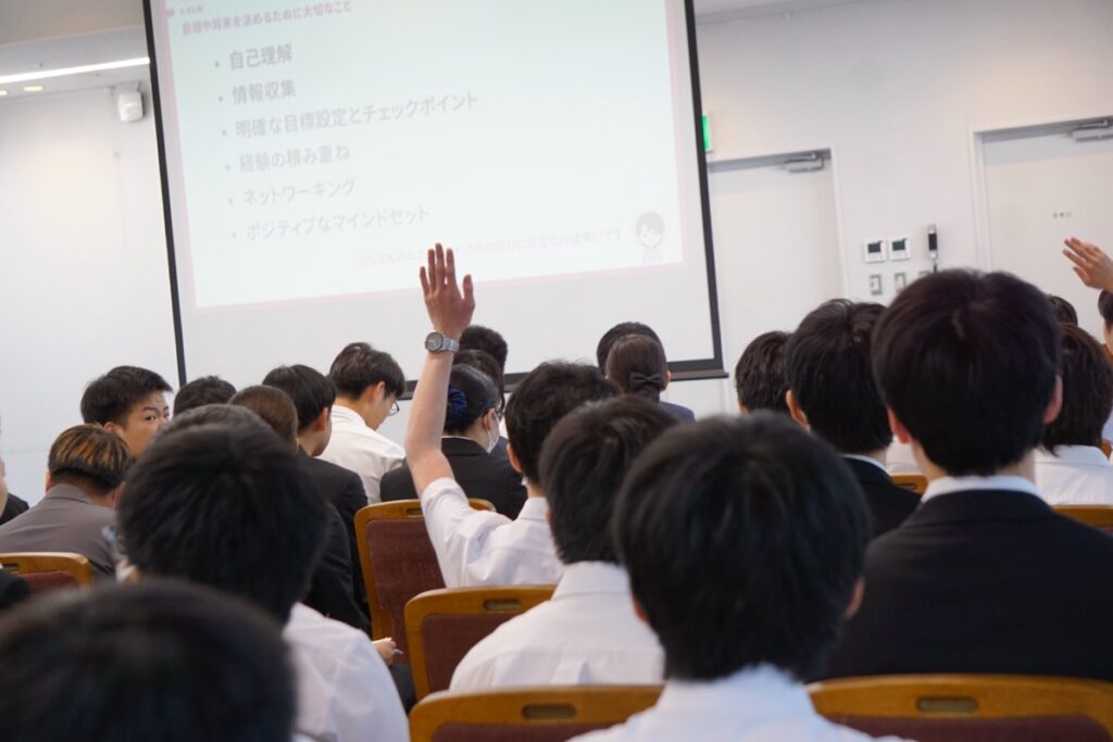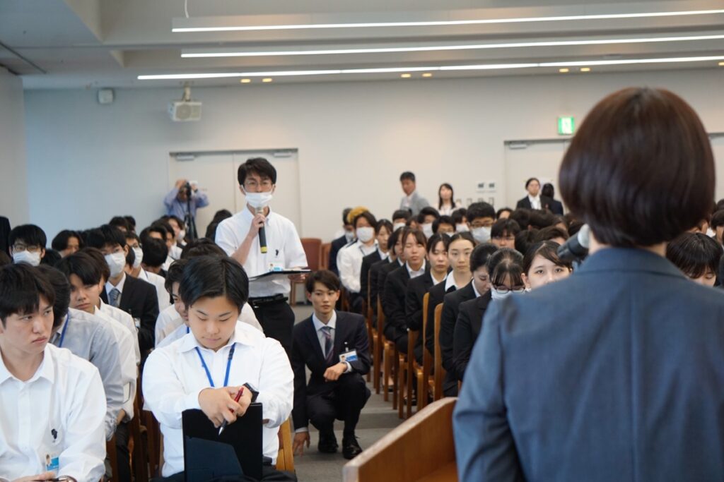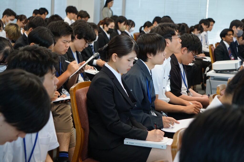 この日は、12階ホールとオンライン中継によるハイブリッド形式で在校生約850人が聴講しました。セミナーに参加した学生からは次のような感想が寄せられました。