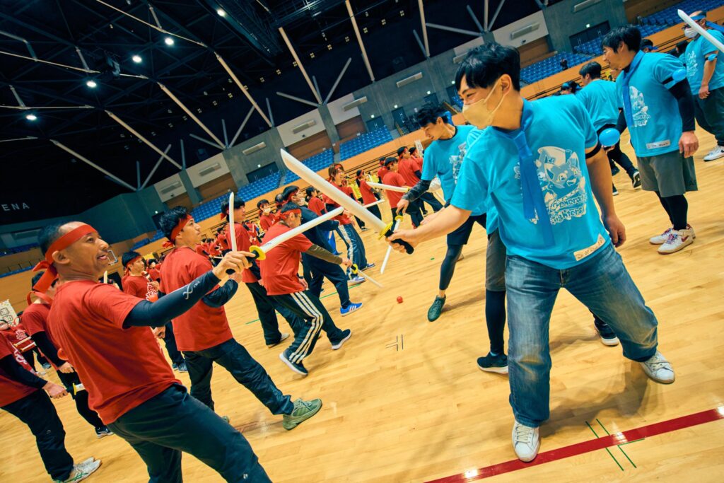 約350人が参加した今回の運動会では、「大俵送り」「四つ巴綱引き」「クイズ大会」「4チーム対抗ガチリレー」そして「チャンバラ合戦」が行われました。どのプログラムも熱戦が繰り広げられ、参加者からは「久しぶりのメンバーと一緒に競技ができて良かった」「いつも一緒に働く同僚の知らない素顔が見られた」「ぜひまたやりたい、次こそは勝ちたい」といった声も上がっています。